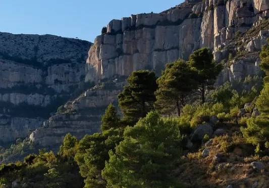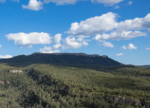 圣⼭产区是由17个主要位于普⾥奥拉(Priorat)地区的市政辖区组成,另外还有⼀部分葡萄园位于埃布罗河岸(Ribera d’Ebre)地区,两个地区葡萄园⾯积总和为1912公顷。圣⼭产区的⼟地由⾼低起伏的⼭脉围绕形成⼀个半圆,在地图上呈现⼀个相当有趣的形状。在北边,坐落着当地⼈所敬畏并作为产区命名来源的 Montsant⼭脉,和并⼊叶状 Prades ⼭脉的 La Llena ⼭脉。在东边,则以 Argentera,Mola de Colldejou 以及 Llaberia ⼭脉为界(⼀起也被称作“加泰罗尼亚海岸⼭脉群”,因其极度靠近地中海⽽得名)。在他们正对⾯,是位于产区另⼀端的 La Figuera 和 Tormo ⼭脉。产区的南部则向埃布罗河⾕打开,此地正是 Siurana 和 Montsant 河交汇的地⽅。这两条河再加上 Capçanes 溪流组成主要⽔资源,供养着圣⼭产区的葡萄园。产区群⼭环抱,地形复杂多变,特别在它的南部,⼭体绵延呈波浪状。葡萄藤⽣⻓在最低50⽶⾄最⾼700⽶的不同海拔⾼度范围之间。