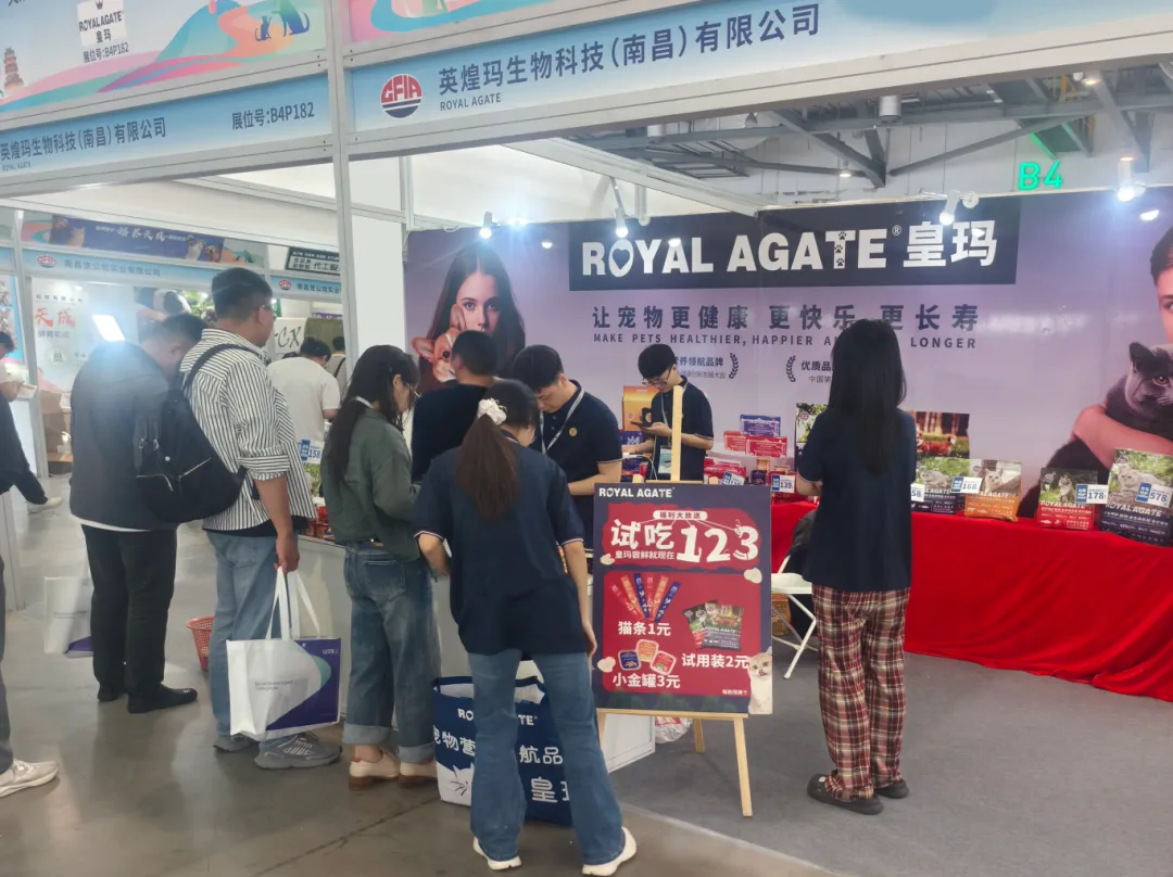 4月18日—4月19日,中国饲料工业展在南昌隆重举办,今年为宠物板块重磅打造“宠物食品经济新蓝海”专题展区,响应消费升级趋势。展区荟萃高端宠物食品、创新零食、时尚用品、智能装备以及先进的医疗保健产品与服务,为品牌商与渠道商搭建精准对接桥梁,共同开拓千亿级消费市场。ROYAL AGATE皇玛受邀参加此次展会,携全系列产品亮相,凭借英伦风格展位与高品质宠物食品,成为展会焦点,广受客商与观众好评。