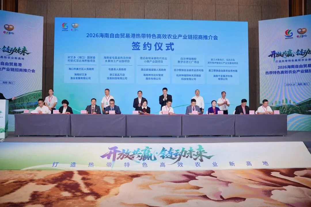 4月14日,海南自由贸易港热带特色高效农业产业链招商推介活动签约仪式现场。
