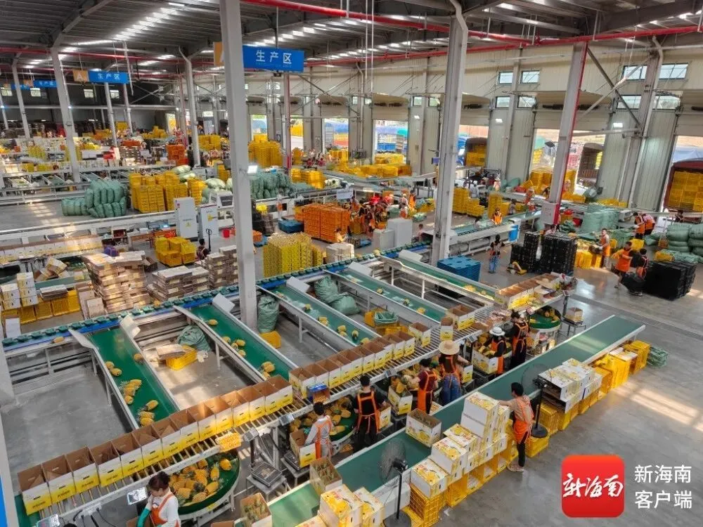 农产基地蓄势赋能:消博会前夕,大致坡农产品加工产业园胖姐冷链集配中心投产开业,总投资1.15亿元。现场,胖姐凤梨与百果园、鑫农懋、果叔等全国知名商超签署战略合作协议,未来将实现年配送金钻凤梨超3万吨,并拓展深加工品类,进军海外市场。
