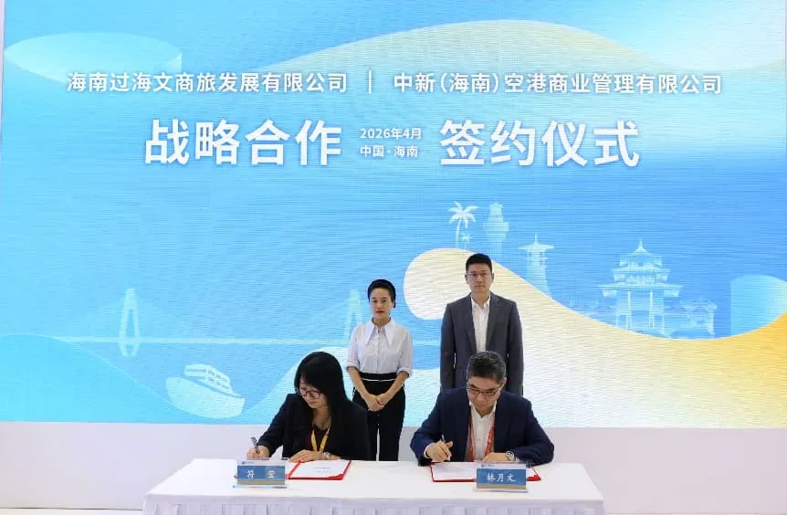 4月16日,在第六届中国国际消费品博览会5号展馆现场,中新(海南)空港商业管理有限公司与海南过海文商旅发展有限公司正式签署合作框架协议。