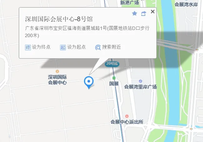 12号线/20号线国展站C1/C2口,国展北站D口,直达深圳国际会展中心。