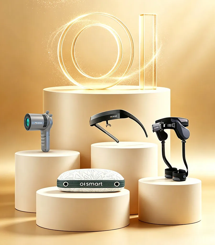 除外骨骼助力器外光谱治疗仪、节律眼镜、AI智能睡眠枕三大核心产品同样火爆出圈。光谱治疗仪凭专利液体滤光技术