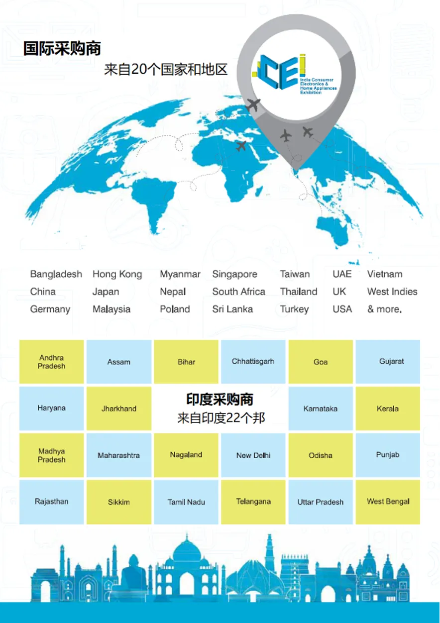 为何参加CEI | 国际性及专业性: CEI是一个在印度举办的以B2B为主要展览类型的国际性专业消费类电子、家电及电子元器件展览会。展览会由国际性的展览集团——Worldex India Exhibition & Promotion Pvt. Ltd举办。 印度主办方拥有多年的优秀的印度消费类电子及家电的采购商数据库,并长期组织印度采购商、进口商前往香港相关行业展览会进行采购。主办单位拥有印度超过10万家从事消费类电子及家电的采购商数据库,包括进口商、经销商、批发商和零售商等等。 | ||||