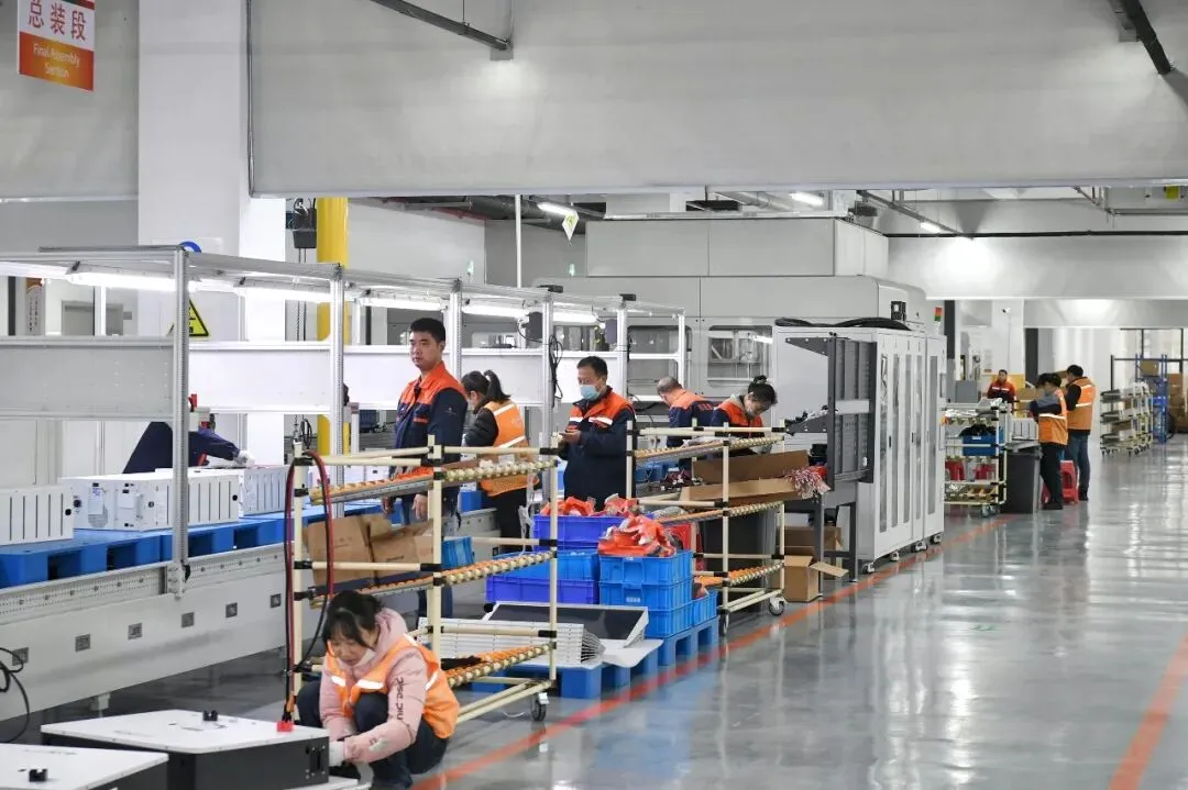 安徽中基投工厂内,工人在组装新能源电池及其配件。