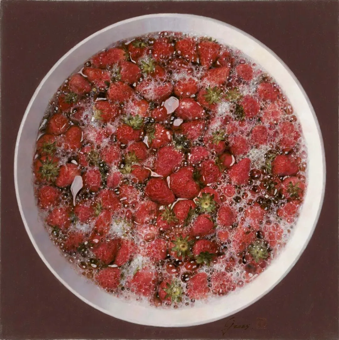 蔡杰 《浮红》之草莓 布面油画 50cmx50cm 2025年