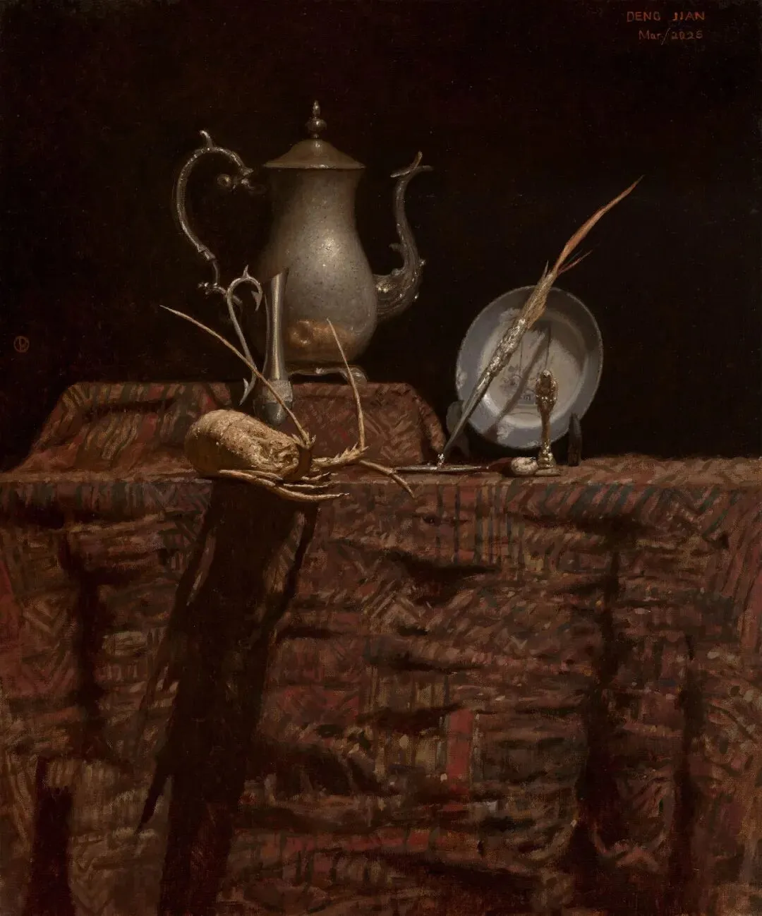 邓鑑 《老银壶与老青花》布面油画 50cmx60cm 2026年