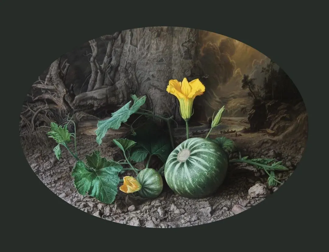 雷艳平 《盛夏瓜熟香满庭》 布面油画 50cmx70cm 2020年