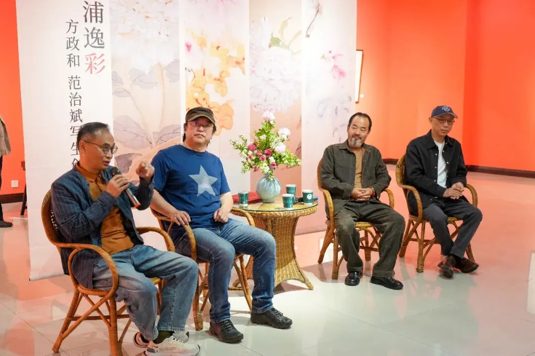 4月18日上午,艺术分享会在洛阳美术馆二楼展厅举行。河南省美协副主席连俊洲、洛阳美术馆馆长张建京与方政和、范治斌两位艺术家同台展开深度艺术对谈,现场艺术同仁、书画爱好者齐聚一堂,共话国画传承与创新。