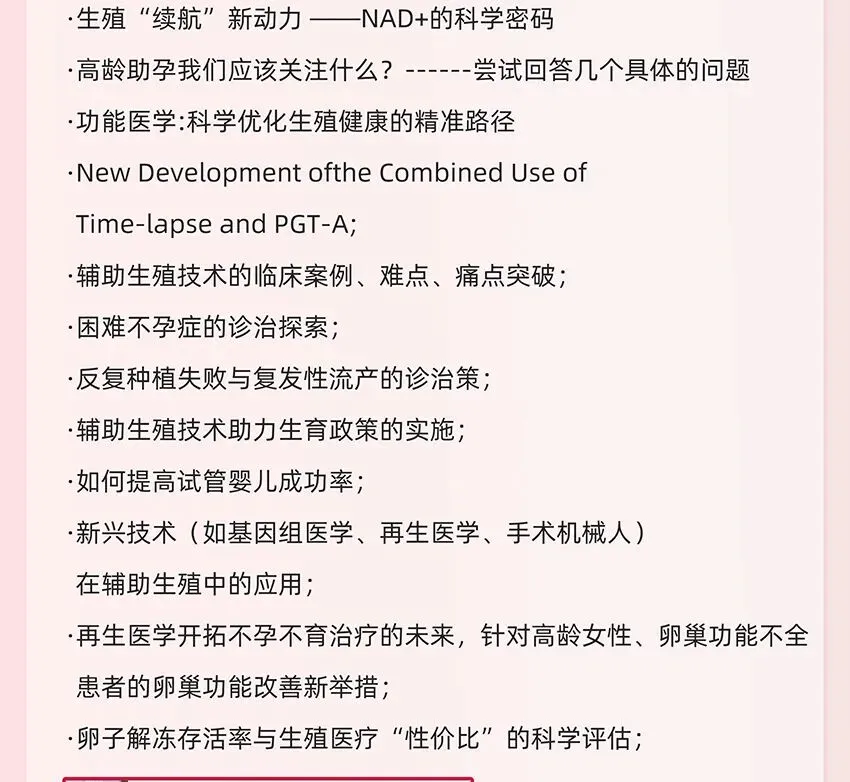 届时,议题覆盖辅助生殖全链条热点,参考行业前沿方向,兼顾专业深度与大众关注。