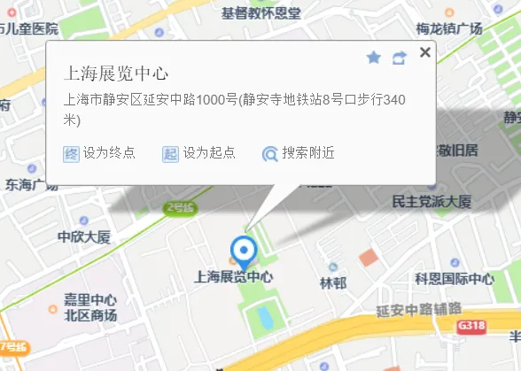 地铁2、7、14号线至静安寺站,8号口出,步行500米到达展馆