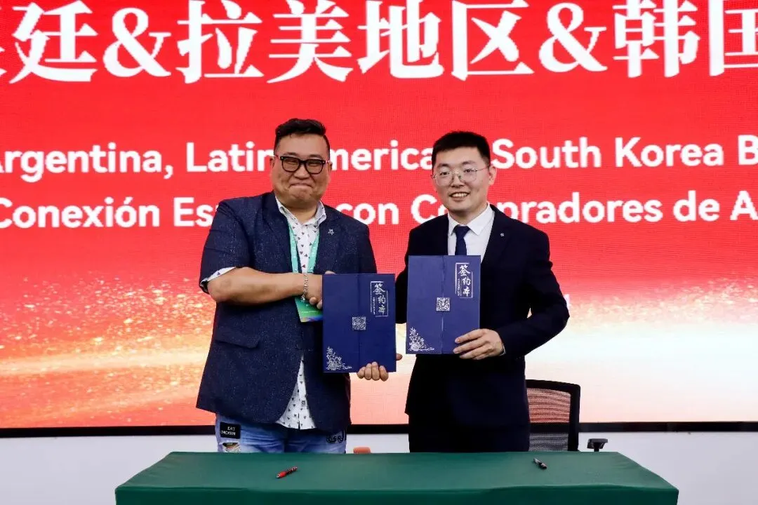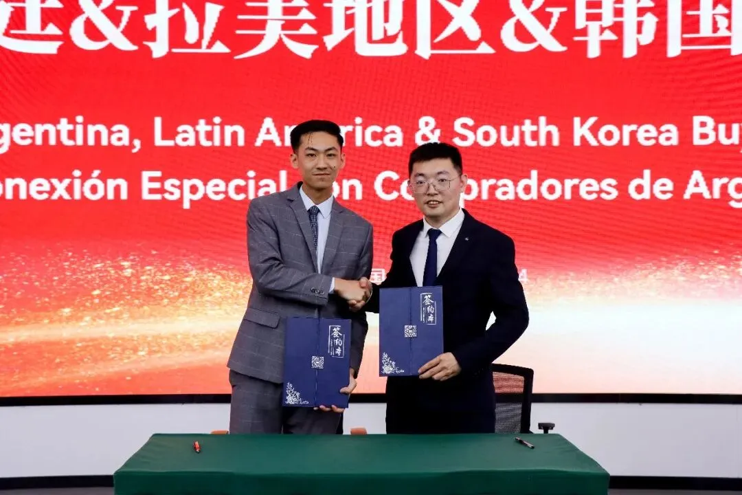 展厅参观结束后,中国大集海外事业部与阿根廷采购团、韩国采购团分别签署战略合作协议。签约仪式上,双方就长期采购、供应链协同及海外市场拓展达成共识,标志着中国大集在拉美及东亚市场的合作网络进一步深化。