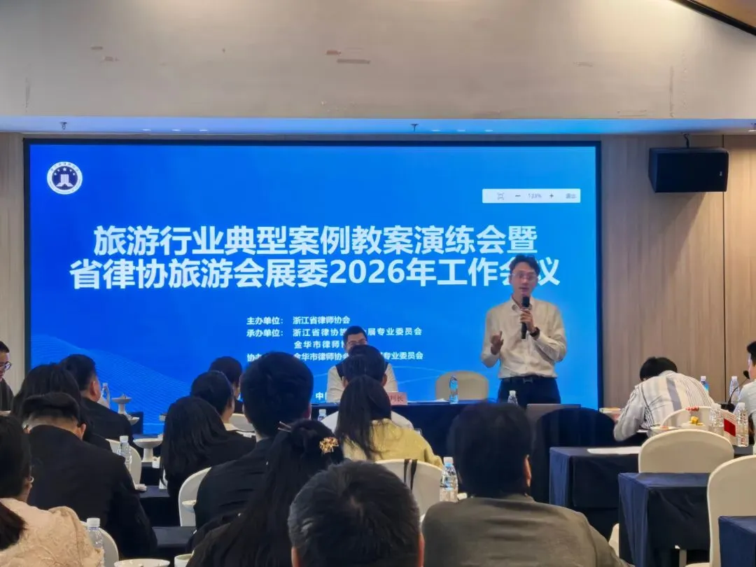2026年4月18日,由浙江省律师协会主办,省律协旅游会展专业委员会、金华市律师协会承办,金华市律师协会文旅传媒专业委员会协办的“旅游纠纷案例演练”研讨会暨省律协旅游会展专业委员会2026年工作会议在金华顺利举办。金华市律师协会副会长应旭升出席会议。
