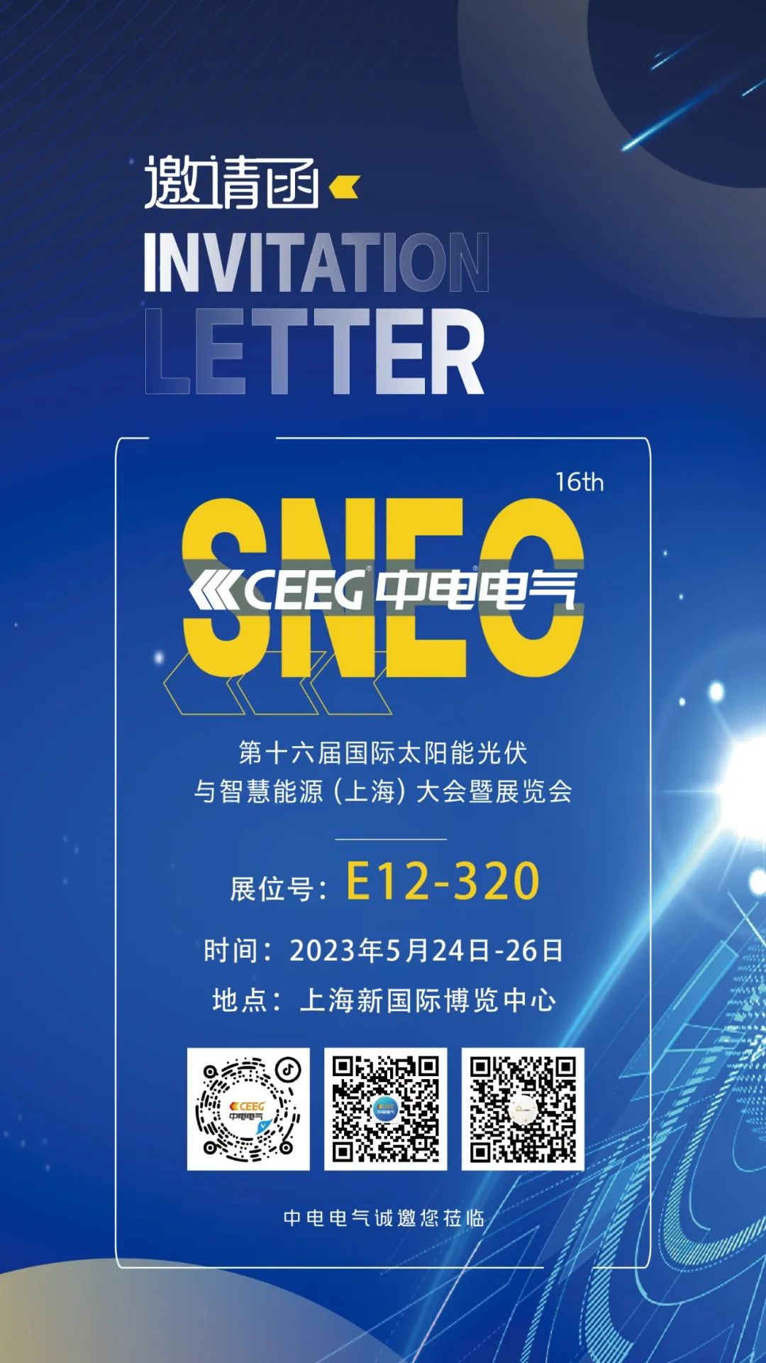 第十六届(2023)国际太阳能光伏与智慧能源(上海)大会暨展览会将于2023年5月24-26日在上海新国际博览中心隆重举行,中电电气将携多款高端产品隆重亮相,诚邀您莅临共襄合作。