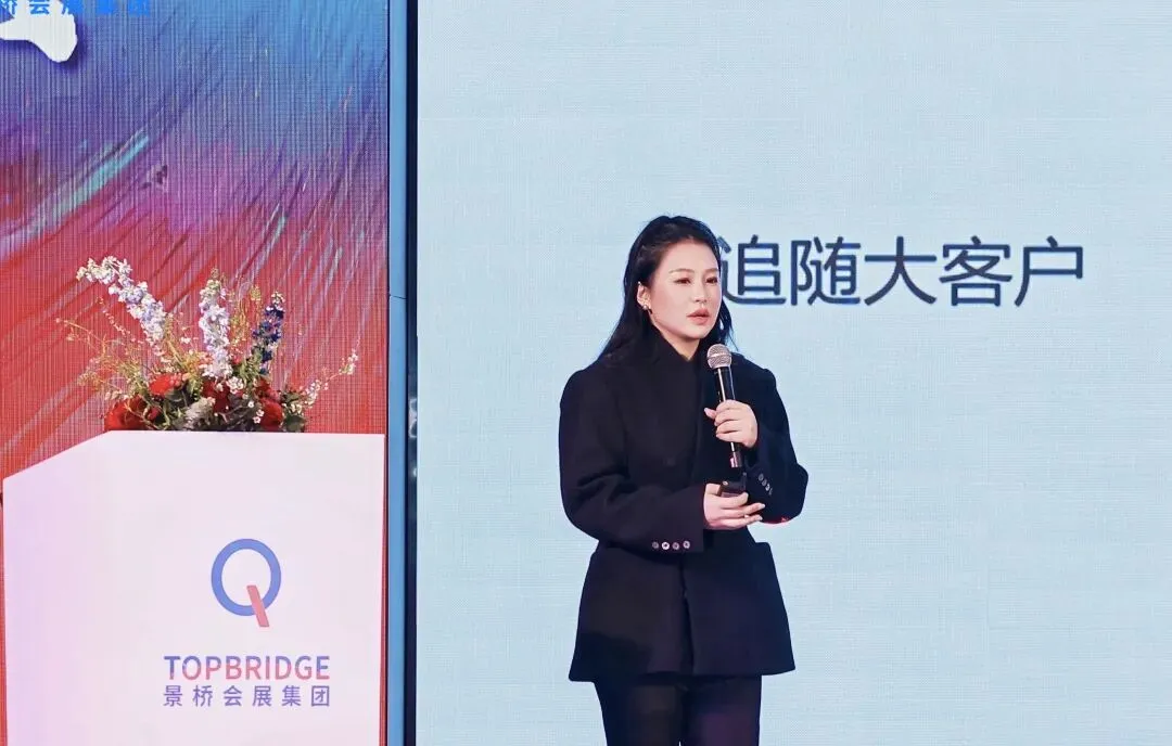 首先,景桥会展集团总裁邓亚乔女士以“尽兴2025,敬兴2026”为主题发表开篇战略演讲,系统复盘2025年成果,擘画2026年蓝图。