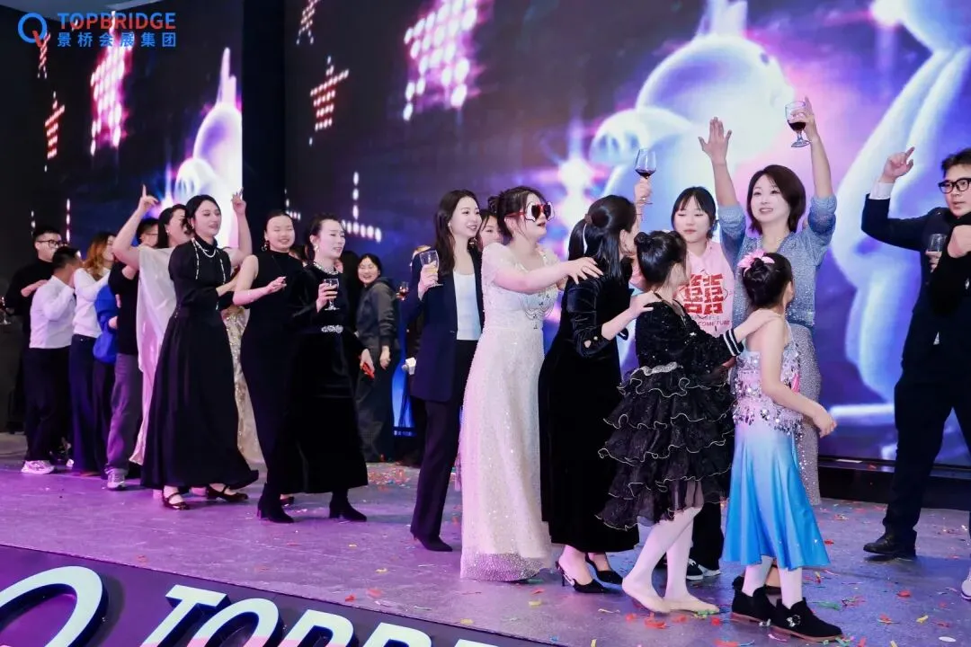 战略凝心,欢聚同庆。会议结束后,350 位景桥家人移步晚宴现场,在轻松温暖的团队交流互动中焕新黑金色晚宴盛装,赴一场属于全体景桥人的荣耀盛宴。