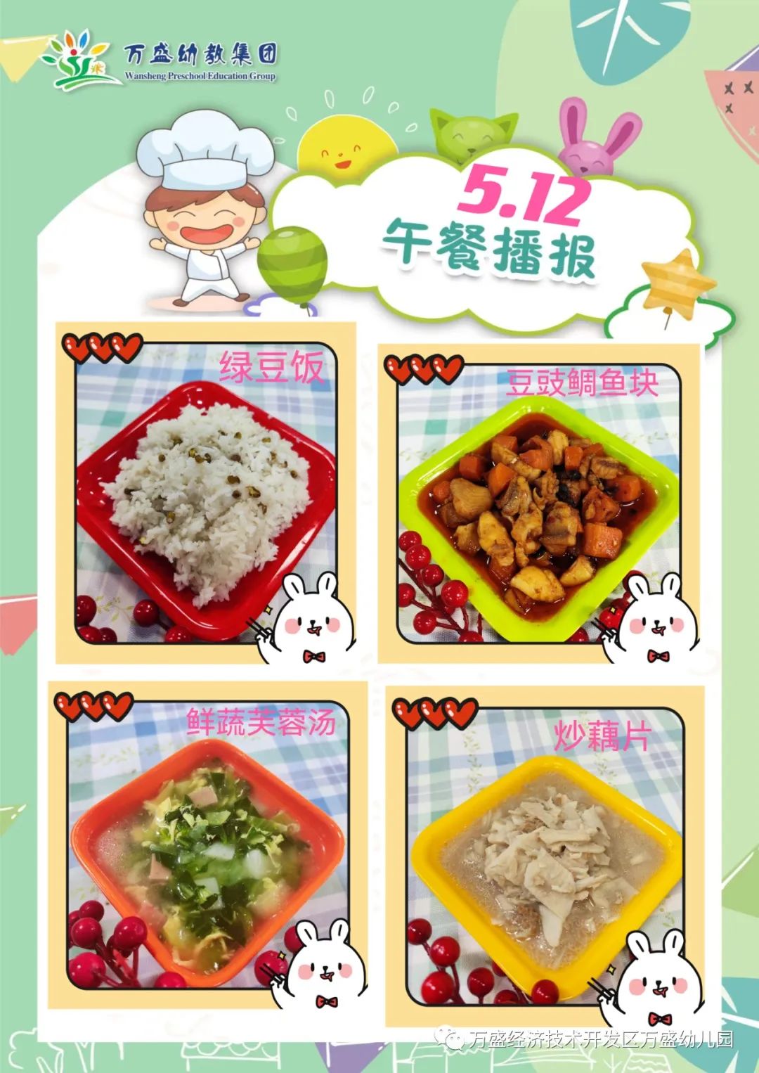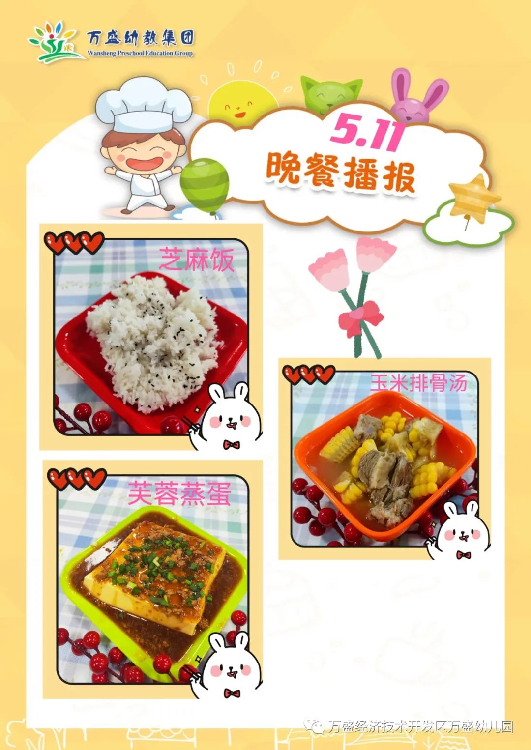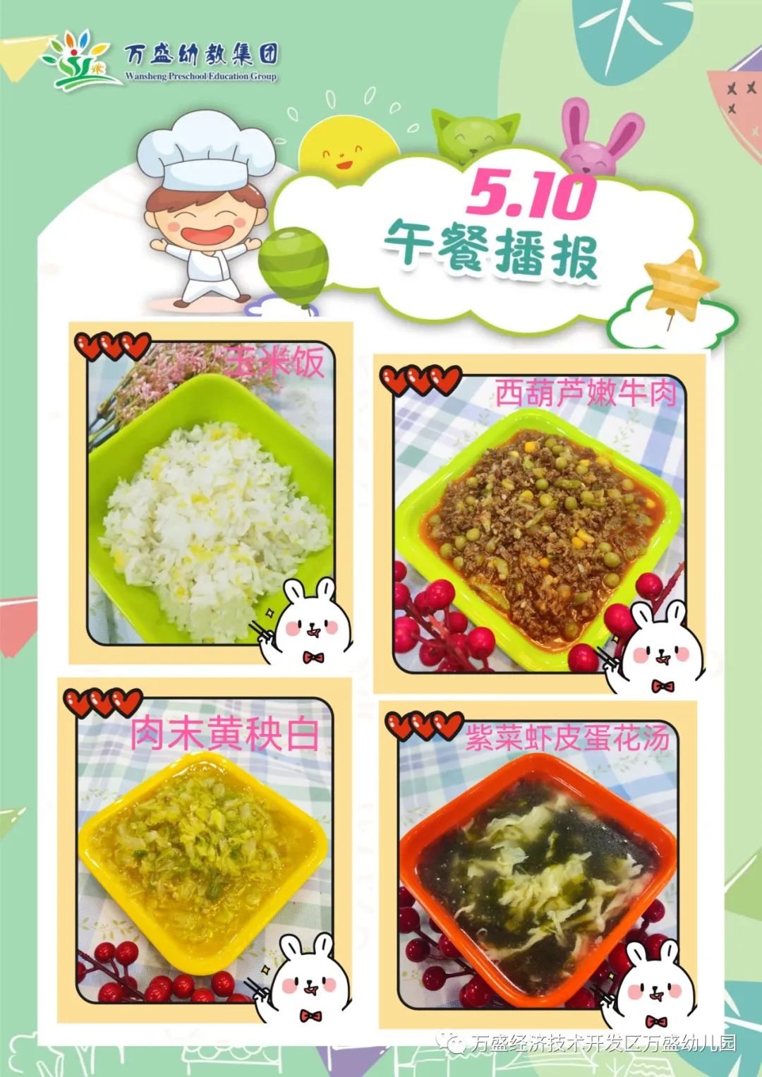 午餐:玉米饭、珍珠嫩牛肉、番茄白玉菇滑蛋、筒骨白菜肉泥汤