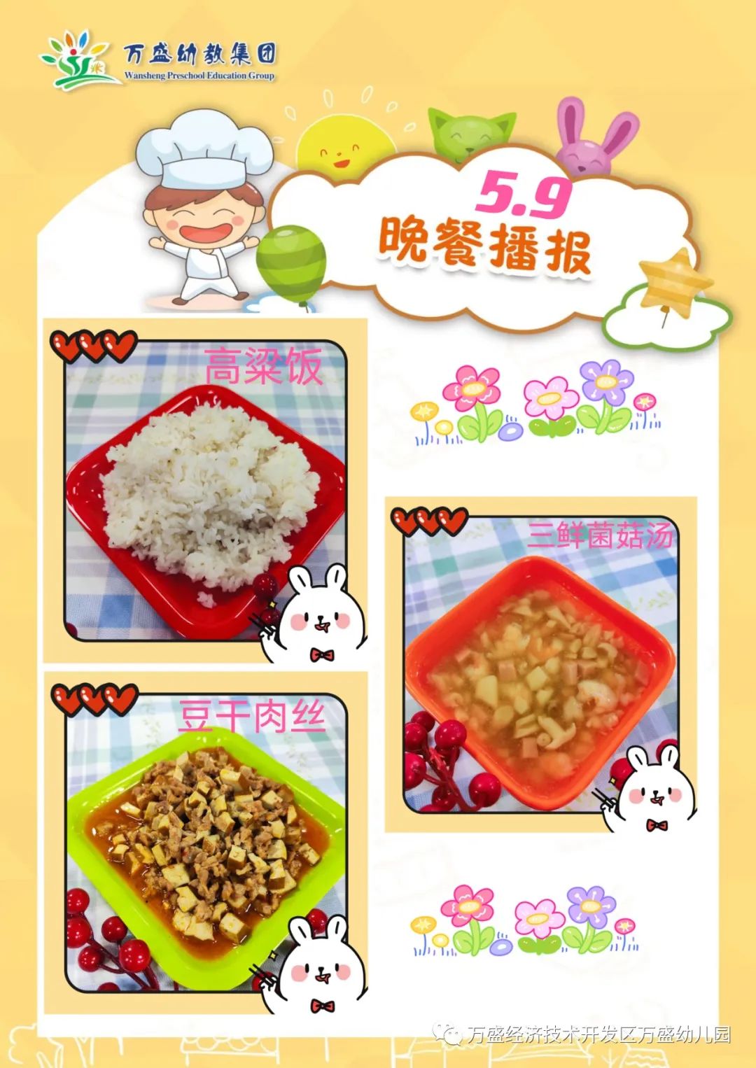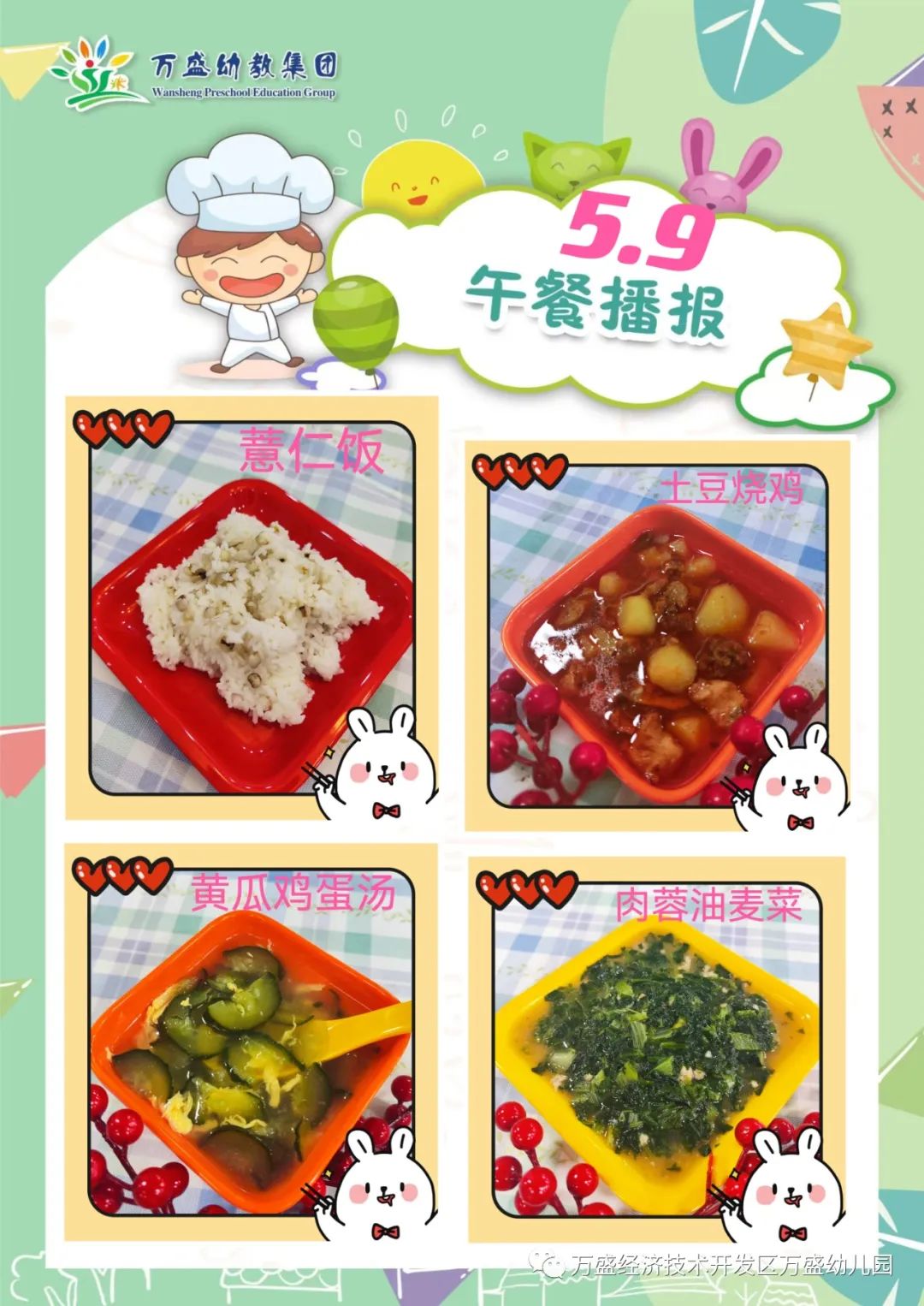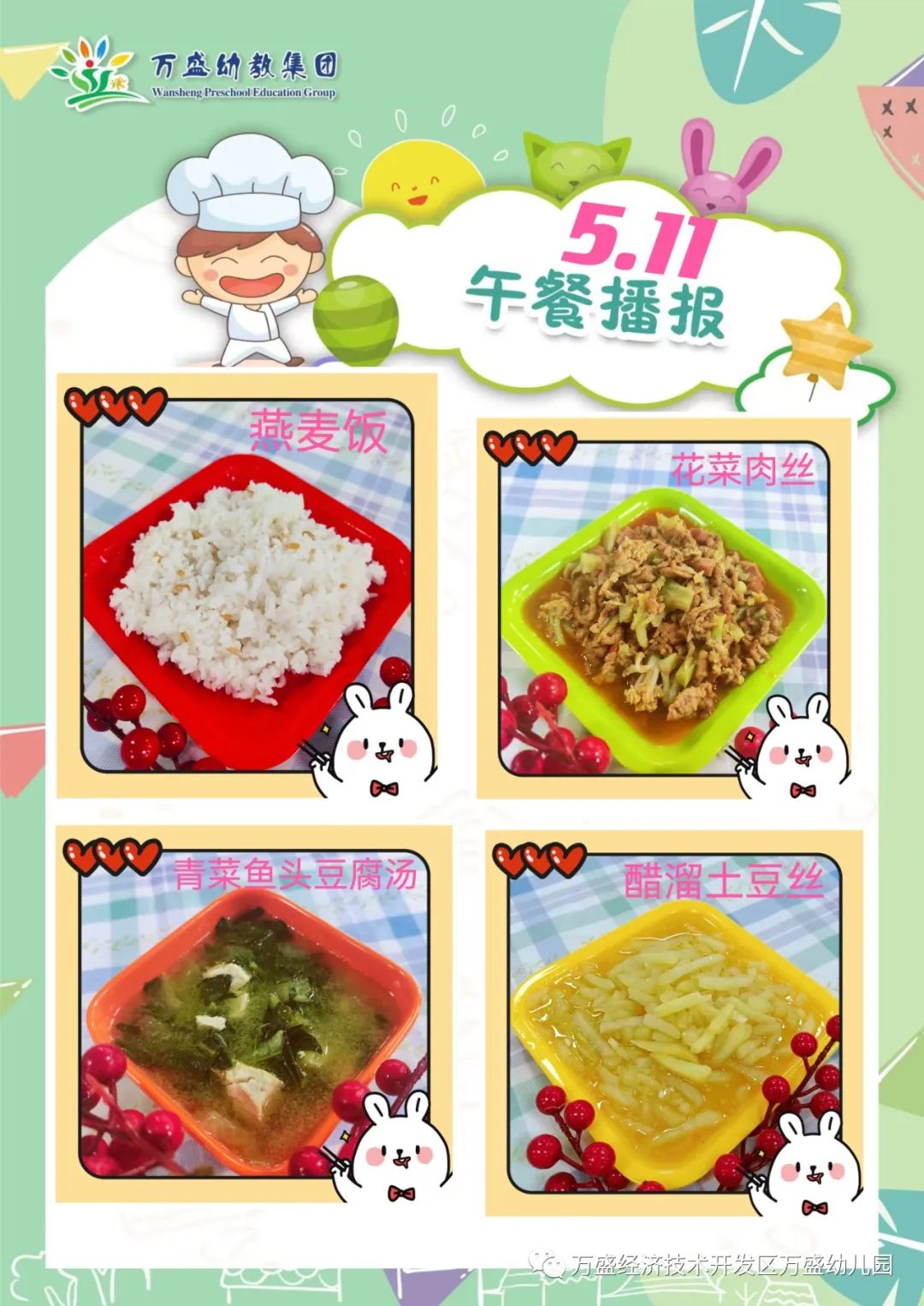 午餐:玉米饭、珍珠嫩牛肉、番茄白玉菇滑蛋、筒骨白菜肉泥汤