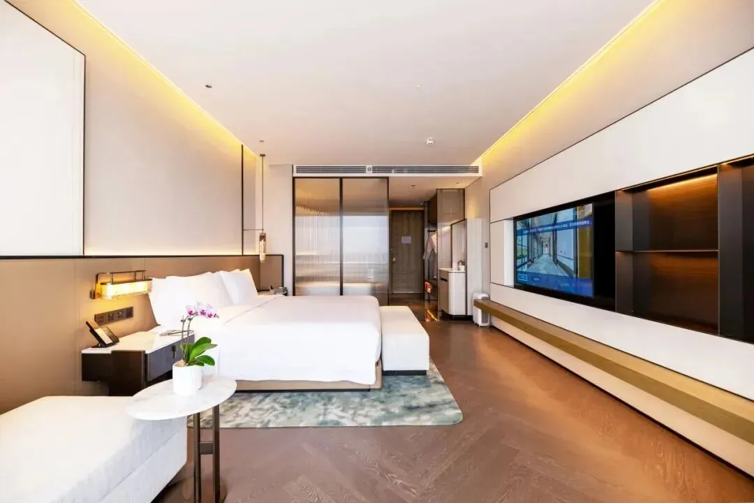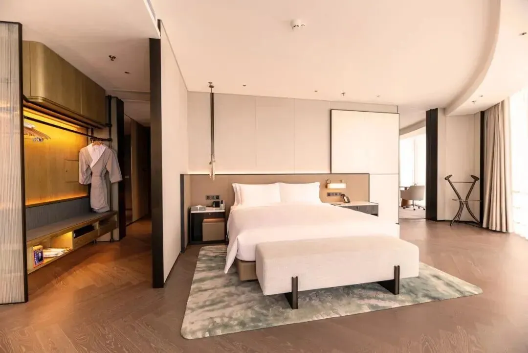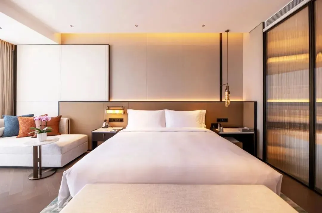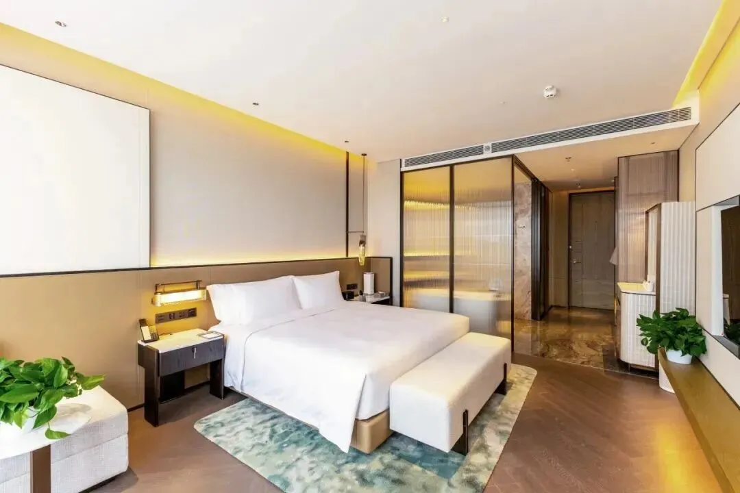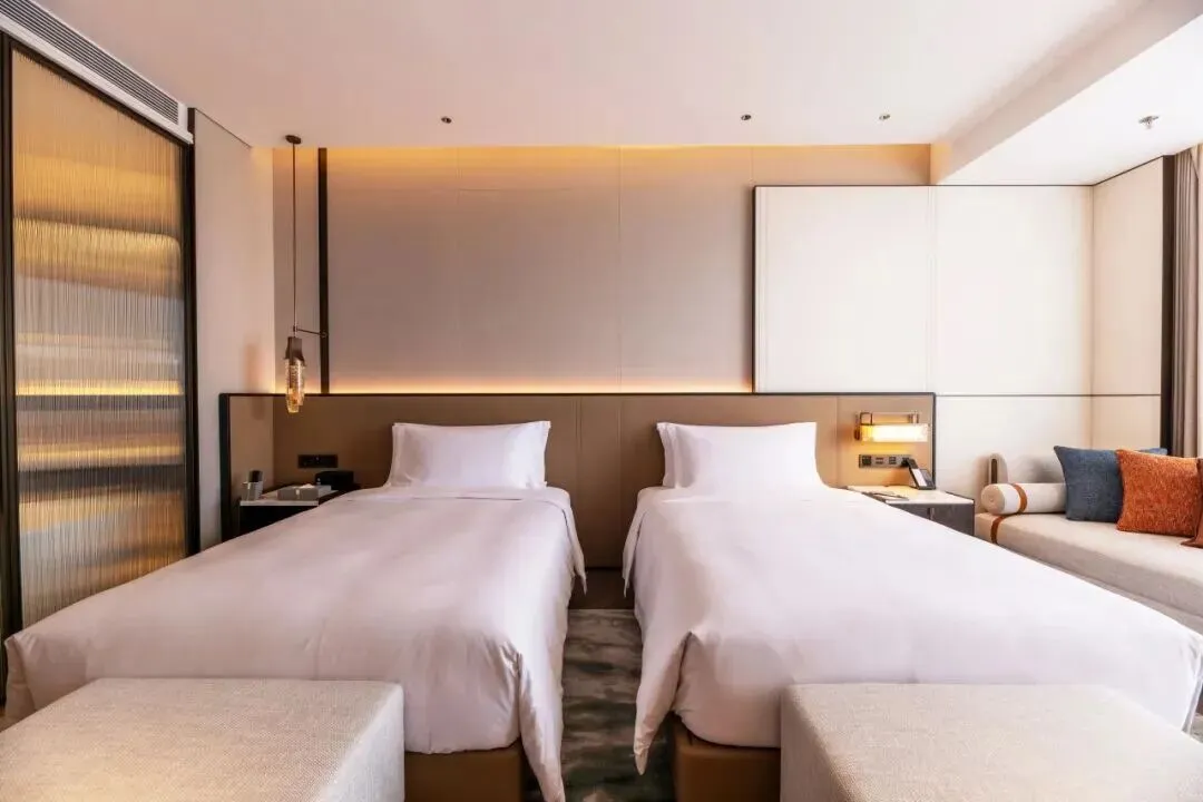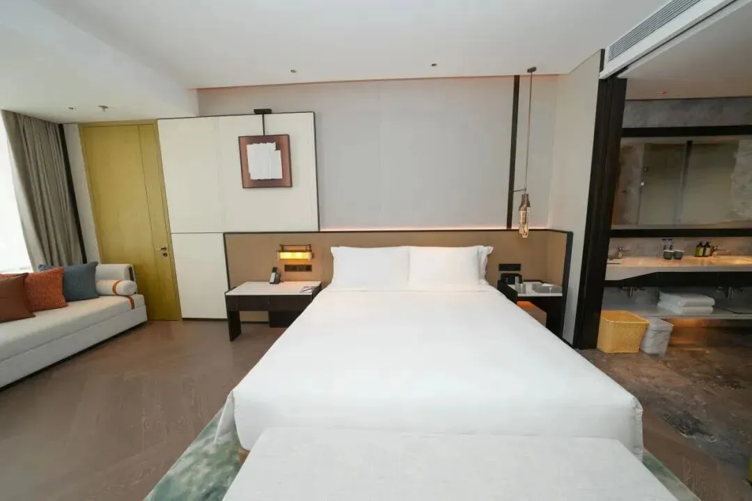 酒店3至8层拥有410间不同类型的客房及套房,满足单人差旅、团队入住、家庭观展等多元需求。每间客房均配备高品质卫浴、高速网络、静谧隔音系统,让您在喧嚣展会后,享受一方宁静天地。