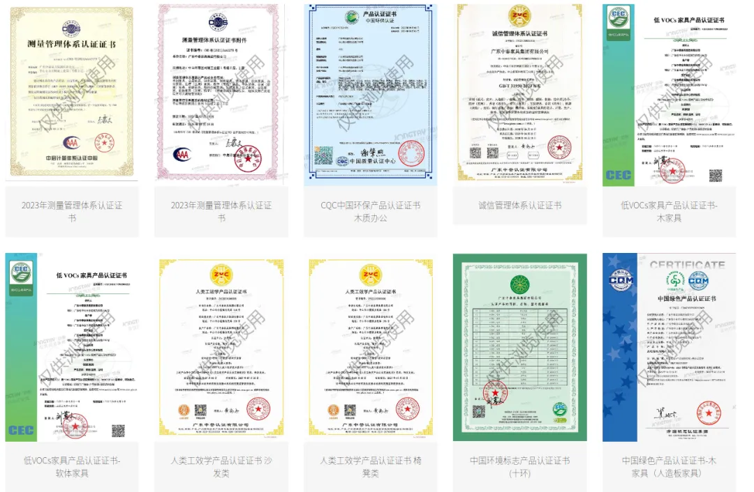 企业持有ISO体系、CNAS认可、绿色环保、人类工效学、碳足迹等数十项权威认证,从质量、环保到安全全方位彰显企业实力与责任担当。