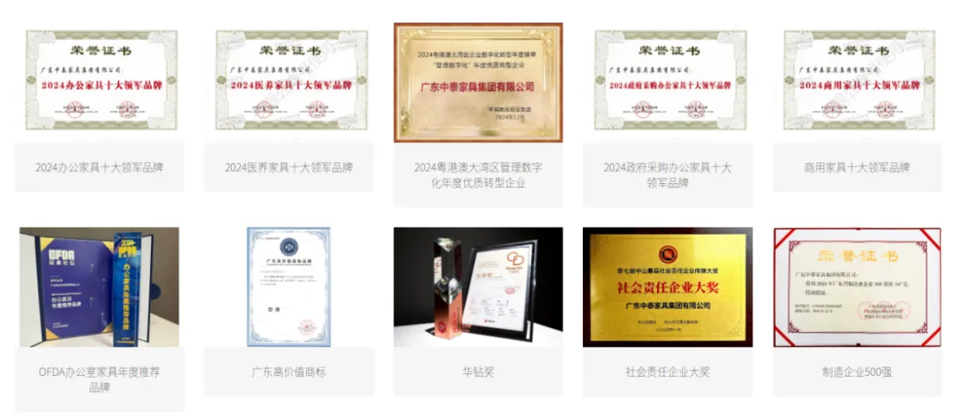 连续多年获评国家高新技术企业、广东省制造业500强、办公家具及医养家具领军品牌,斩获国内外多项设计与科技大奖。连续10年位居办公家具领军品牌、办公家具十大品牌、绿色办公家具十大品牌、政府采购十大品牌、医养家具领军品牌、绿色医养家具十大品牌之列。
