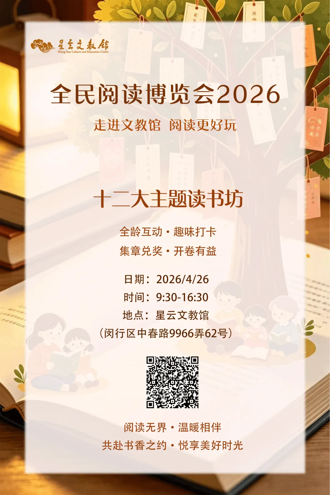 春光正好,书香可期。4月26日,星云文教馆全民阅读博览会即将启幕,愿阅读成为一种生活方式,滋养心灵,丰盈人生。