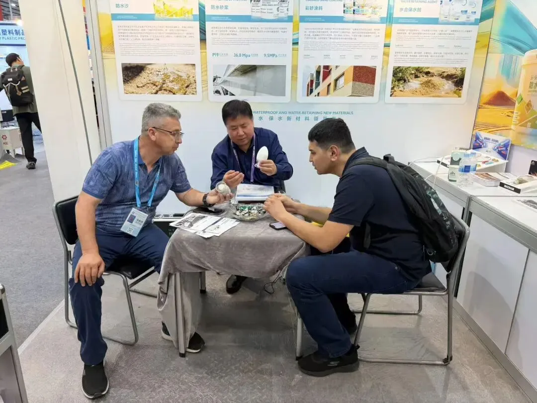 其中,俄罗斯、印度、沙特等国的客商对防水彩砂格外关注。防水彩砂以其丰富的色彩选择、优异的耐候性和环保性能,为建筑外观装饰提供了全新的解决方案,在这些国家的市场潜力巨大。韩国、英国、美国等国的客商则聚焦于防水砂浆,该产品出色的防水效果和稳定的性能,能够满足各类建筑防水工程的高要求,在国际市场上具有很强的竞争力。而乌兹别克斯坦、哈萨克斯坦等国的客商对保水剂需求明确,保水剂在农业灌溉、土壤改良等领域发挥着重要作用,对于这些干旱地区来说,具有重要的应用价值。