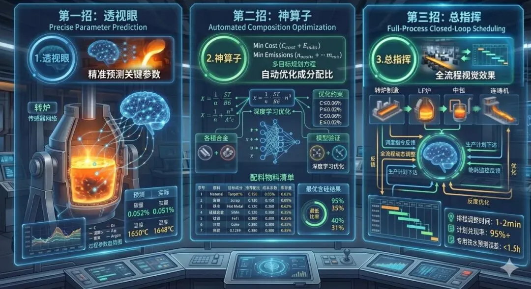 炼钢这件事,过去很大程度上靠的是老师傅的“手感”和“经验”。但经验总有天花板:关键参数预测不准,资源调度跟不上,吨钢成本居高不下。这三道坎,像三堵高墙,横在团队面前。