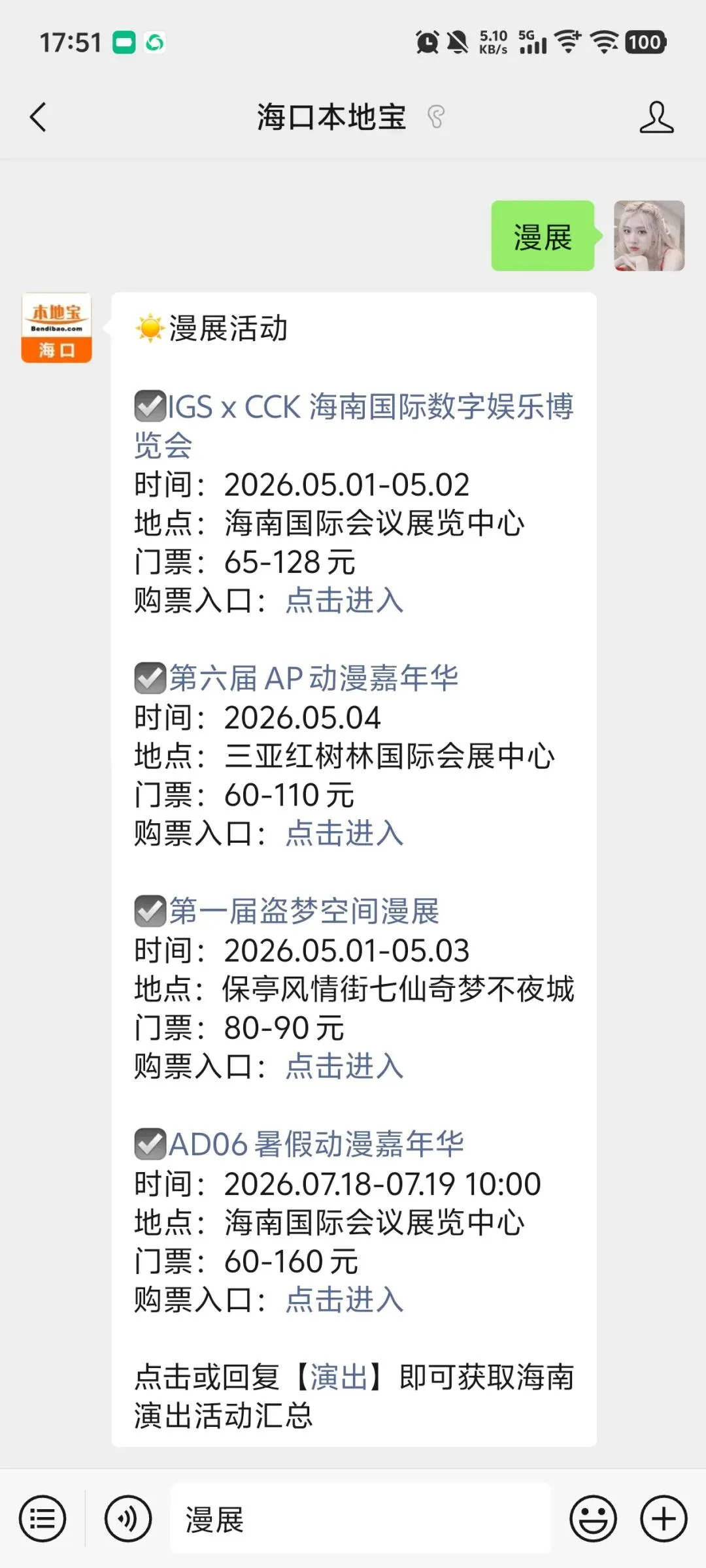 或是点击下方名片,关注【海口本地宝】,关注后在微信对话框回复【漫展】,即可获取购票入口。