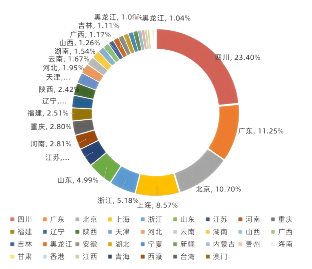地域覆盖全国,核心市场高度集中。 四川以 23.40% 的占比位居第一,广东(11.25%)与北京(10.70%)分列二、三位;上海、浙江、山东等消费强市同样排名靠前。西南、华南及京津冀构成三大支点,带动全国行业联动。展会还吸引了国际知名酒庄代表及行业协会人士到场,进一步印证了名庄酒先知的行业号召力和国际影响力。