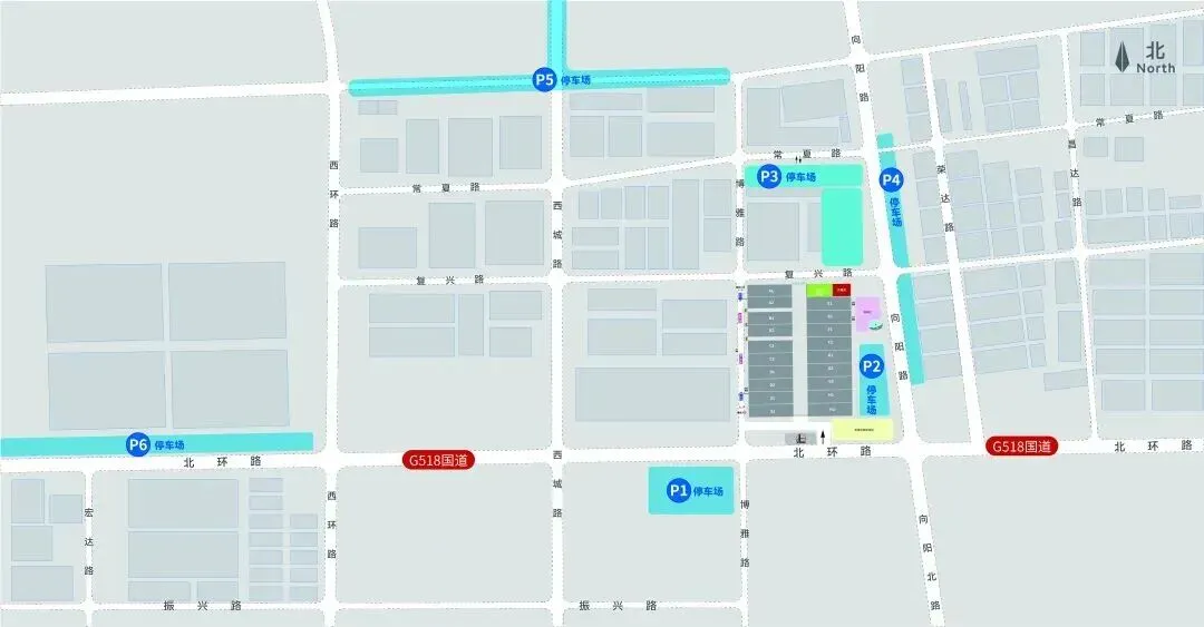 展会周边共设有6个停车场:P1、P2、P3、P4、P5和P6停车场。建议您根据来车方向及现场指示,就近选择停车场有序停放。请留意道路引导标志,服从现场指挥,共同维护交通秩序。