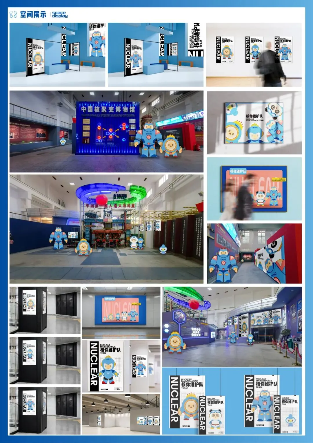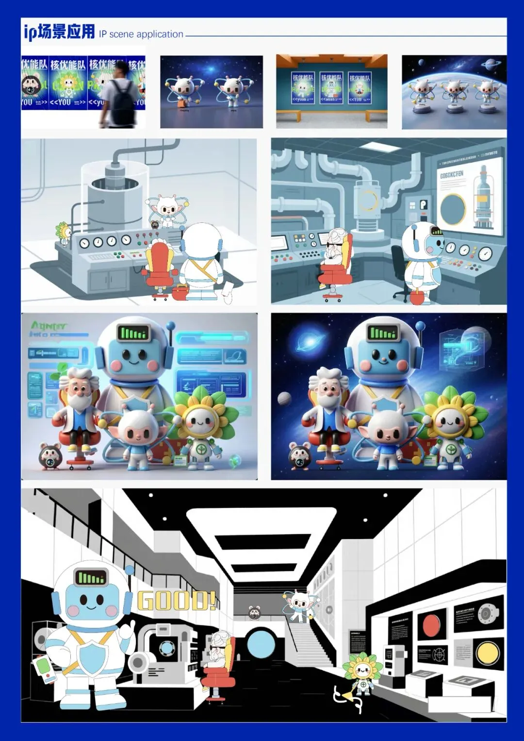 设计说明:本核工业IP设计区“科趣核梦团”为概念,构建趣味化核工业科普场景。角色设计融合核工业科技感与卡通亲和力,场景打造“工科空间”,通过管道、仪器等元素还原核工业环境,搭配“数智窗”等交互界面,传递核工业数字化、智能化发展趋势。整体设计以轻松叙事打破核工业严肃刻板印象,借IP角色与场景,向大众科普核知识,拉近公众与核工业距离,助力核工业文化传播与科普教育,让核科技以更友好姿态走进生活。
