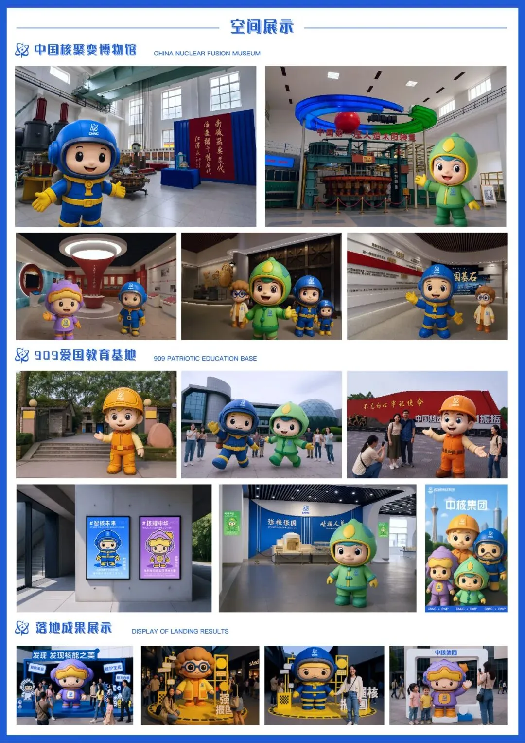 设计说明:本项目为中核集团IP形象设计,以“核聚多元力量,筑梦国家未来”为核心,打造五大角“核小星”穿蓝宇航服诠释“四个一切”核工业精神使命,“核小聚”着紫衣传播核聚变文化,“核小匠”着橙工装展现工程师匠心,“核小绿”着绿衣践行环保责任,“核小医”穿白大褂融合核技术与人文关怀。五角色从能源、知识、工程、环保、医疗维度,立体呈现中核多元实力与“强核报国、创新奉献”精神,以拟人化拉近公众与核科技距离,传递服务国家、造福民生的形象。