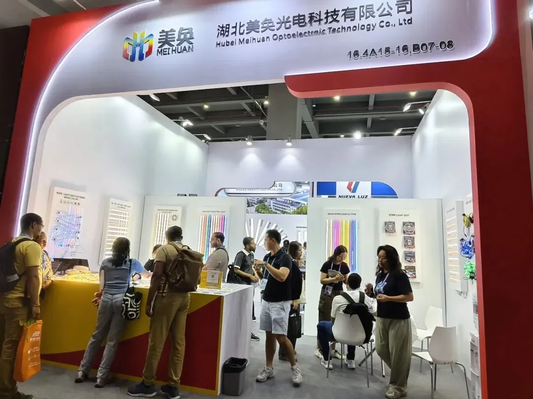 湖北美奂光电科技有限公司展出的LED动态全彩节能灯串,采用高亮度LED芯片、纯铜芯线与IP68防水灌胶工艺,集成调光、触控感应及远程智能控制等先进技术,兼顾优异导线性能和绿色低能耗,吸引来自迪拜、沙特、土耳其、埃及等国家客商现场下单,订单额总计超373万美元。