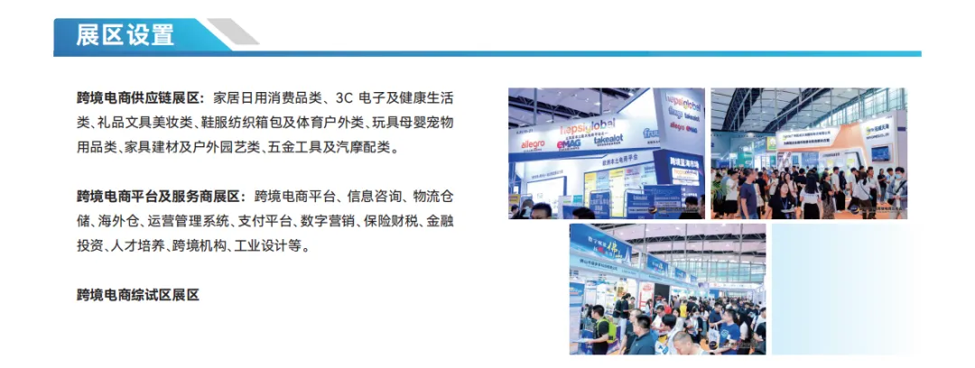 :跨境平台、物流仓储、支付金融、数字营销、财税合规、人才培养、工业设计等全链路服务; - 中国跨境电子商务综合试验区主题展区