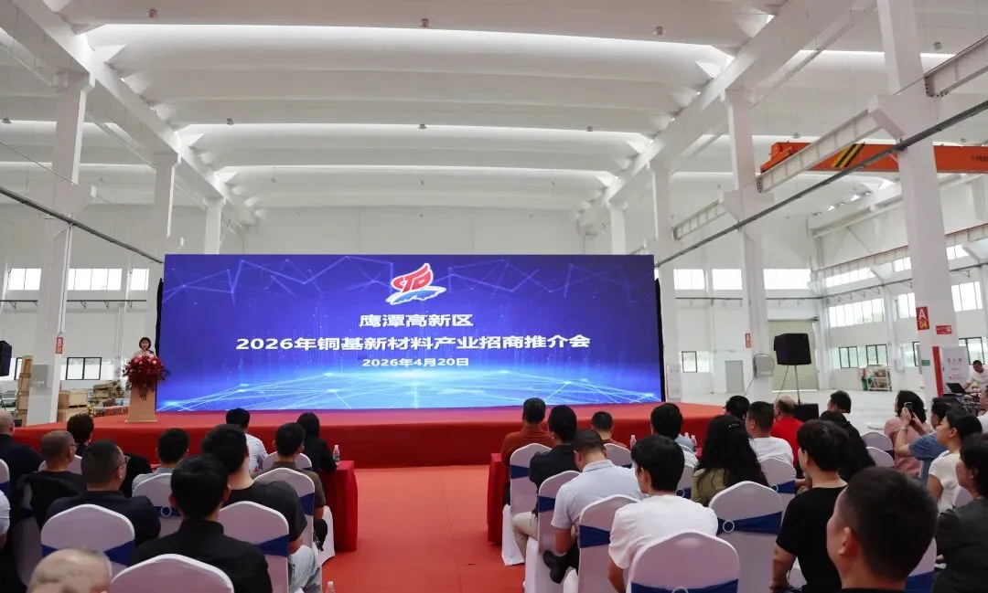 4月20日,鹰潭高新区2026年铜基新材料产业招商推介会成功举办,以产业为媒、以招商为桥,汇聚行业力量,共话合作机遇,共谋发展新篇。高新区党工委副书记、管委会主任肖霖出席并致辞,高新区党工委委员、纪检监察工委书记叶国琼出席会议,高新区党工委委员、管委会副主任吴银莲作高新区铜基新材料产业发展情况推介。高新区各相关部门负责人、招商小分队成员,以及98家太阳线缆设备上游供应商、下游客户代表等共计200余人参加会议。