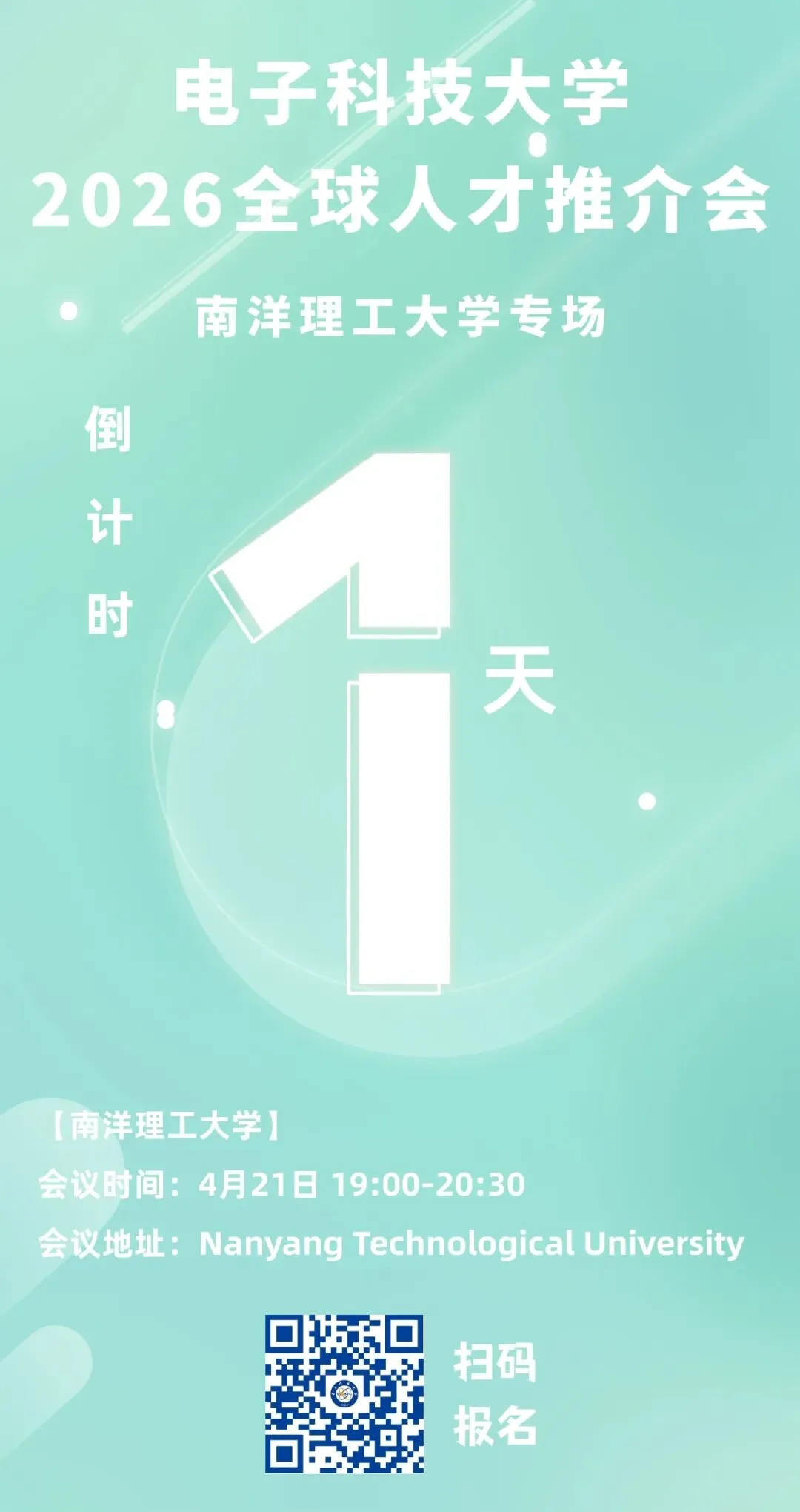 倒计时1天!电子科技大学全球人才推介会-NTU专场,诚邀报名参会!