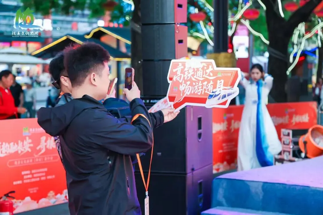 夜幕降临,大唐不夜城华灯璀璨,唐风古韵与随县风情完美交融。开场表演气势恢宏,随县特色文艺节目轮番上演,推介官深情讲述炎帝故事、展示随县山水,引得现场掌声不断、叫好连连。歌声与掌声交织,赞叹与期待相融,随县文旅品牌在长安夜色中深入人心。