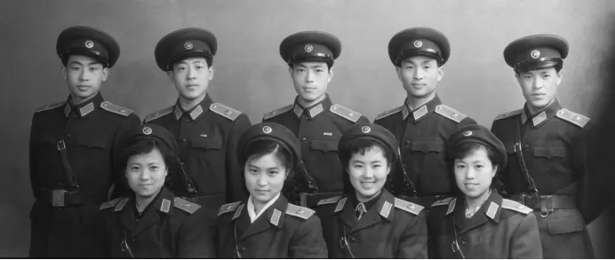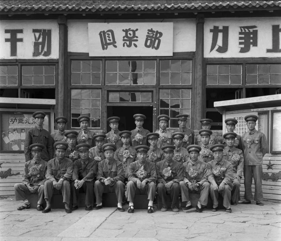 1963年,中国人民解放军某连队优秀战士和干部合影。