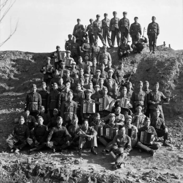 1959年,67军200师文工团在青岛驻地周边训练场合影。
