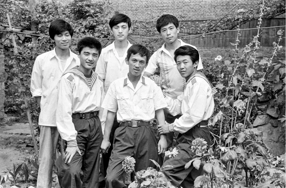 1983年9月,战友同学合影。前排左起,李健,杨杰,孟波,后排左起,李振刚,曲建民,管青。