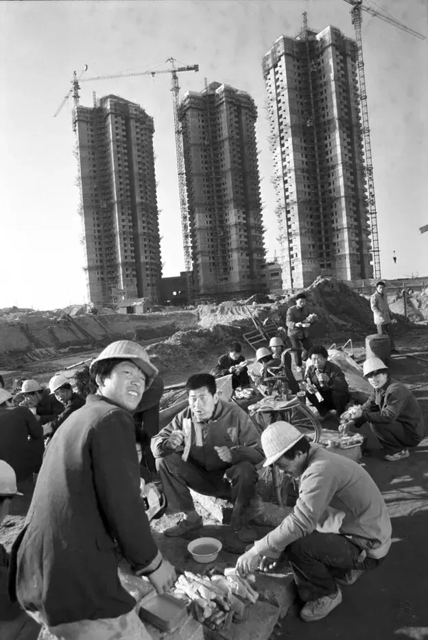1994年5月,金都花园施工现场。这一年,东部的基础设施建设全面提速,道路建设以香港中路(原湛流干路)为主轴的道路网基本成型,东海路(海滨大道)的建设也在推进,将东部与石老人旅游区连成一线。