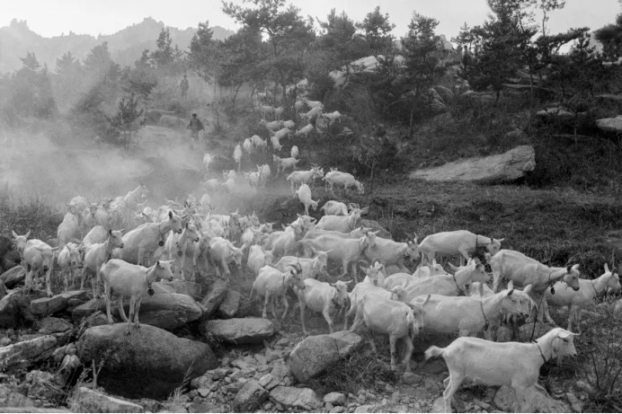 1991年,青岛崂山山区牧羊。青岛郊区多山地,1990年代,畜牧业曾是当地农村经济的重要组成部分。