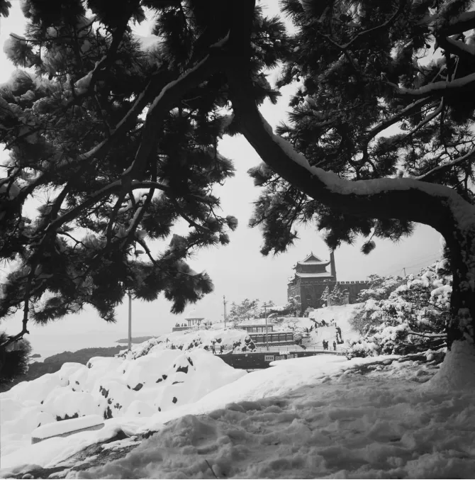 1986年,大雪后的青岛鲁迅公园水族馆。公园初建于1930年代,曾被称为“海滨公园”。1950年,为纪念鲁迅先生,更名为鲁迅公园。