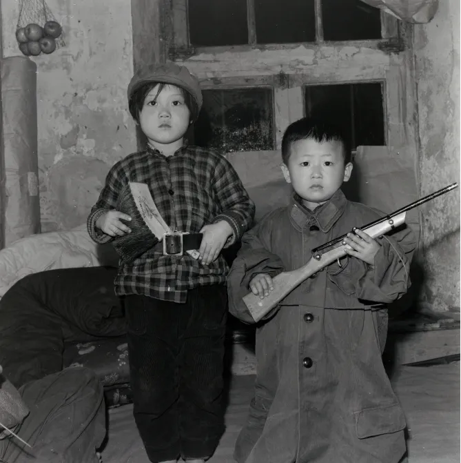 1972年,孟庆林老家-河北唐山乐亭县,儿子孟波与家中堂兄弟姐妹。
