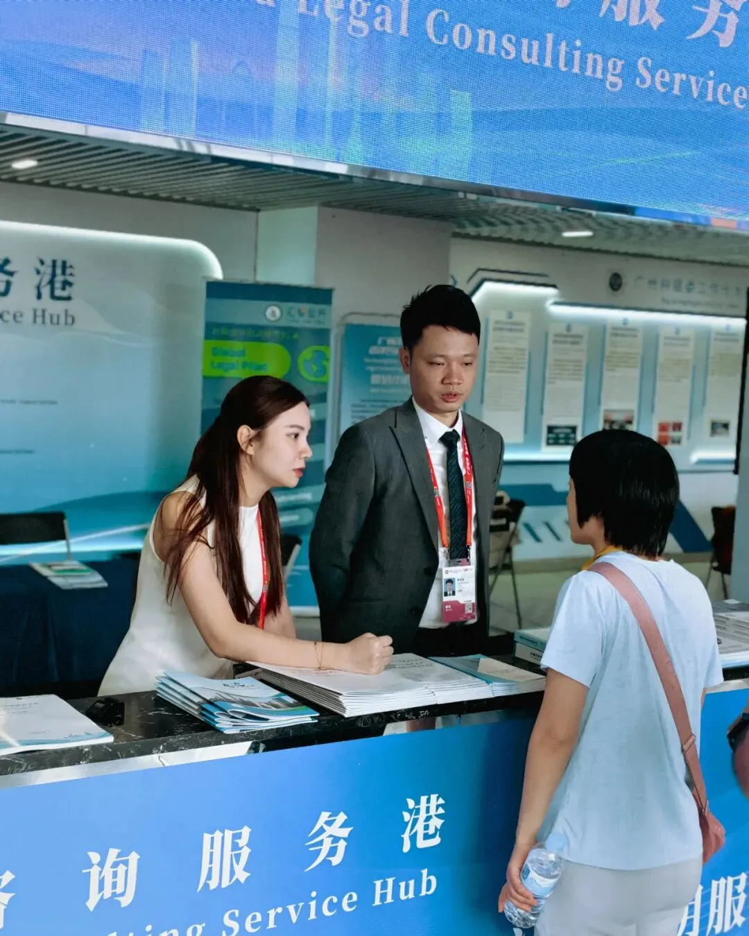 4月16日至19日,刘懿霆(广之洲)、刘江业(环宇京茂)、卢永越(法丞汇俊)、朱子奇(大同)、李为(恒都)、李健明(祈福)、杨伊萍(金杜(广州))、林庆仪(卓凡)、林栋华(浩天)、梁馨语(珠江)、苏文卿(华进)、虞正飞(卓信)、谢姗珊(三环汇华)、闪涛(广信君达)、闫大勇(港宏)、陈旭健(策略)、陈治言(兰迪)等17位涉外律师分别在涉外法律咨询服务港的B港和D港驻点值班,聚焦跨境投资、知识产权等多个专业领域,为来往展客商贴心地解答法律问题。