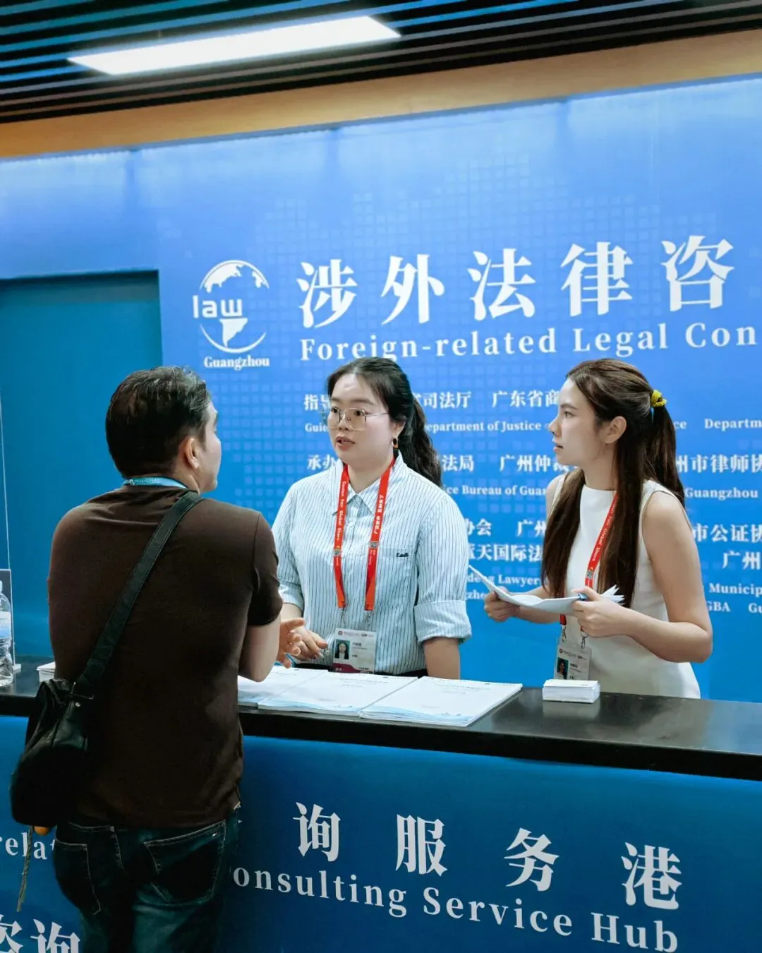 律师为前来咨询的展客商解答的内容主要涉及国际贸易、知识产权(商标、专利)、跨境投资、债务追索(拖欠货款)、纠纷解决、国际贸易纠纷、跨境电商、公司开设流程等多个领域,客商们纷纷为广州律师法律服务团的专业优质服务点赞。