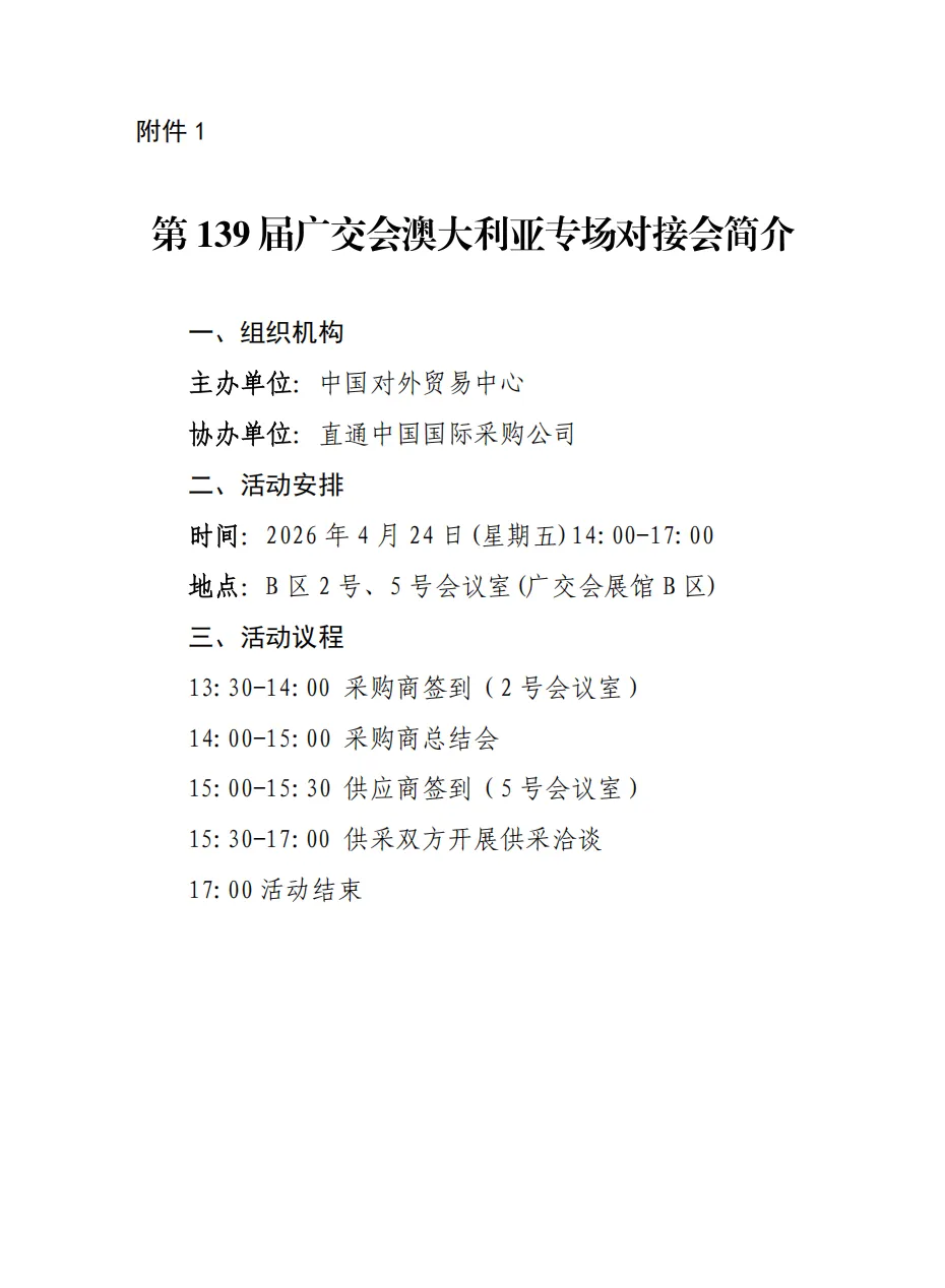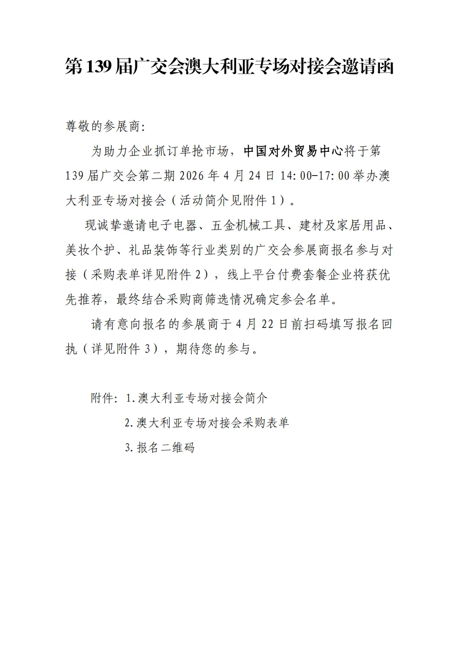 第139届广交会澳大利亚专场对接会邀请函