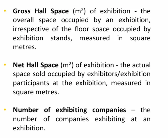 2026年4月,英国活动产业联盟(Events Industry Alliance,EIA)正式发布第十版《英国展览规模与规模指数报告》(Size and Scale Index for Exhibitions,SASIE 2025)。报告显示,2025年英国典型展览的毛面积中位数仅为 5,400平方米 ,平均值也不过 8,200平方米 ,与中国动辄数万乃至数十万平方米的展览规模相比,差距悬殊,令不少业内人士感到困惑:英国作为全球重要的会展目的地,展览面积为何如此之小?这一问题的背后,既涉及中英两国展览面积 统计口径的根本差异 ,也折射出两种截然不同的 会展发展模式与价值取向 。要真正读懂这组数字,需要从概念定义、场馆规模、展览结构、空间设计理念等多个维度加以深入拆解。以下从六个层面逐一剖析。首先厘清概念:英国SASIE同时统计"毛面积"和"净面积"这是理解本报告的 最重要前提 。SASIE报告中明确区分了两个指标,并给出了权威定义:Gross Hall Space(毛面积/总面积) "the overall space occupied by an exhibition, irrespective of the floor space occupied by exhibition stands, measured in square metres." ——展览所占用的 整体场馆空间 ,不论其中有多少是实际展位,均纳入统计。Net Hall Space(净面积/实销面积) "the actual space sold occupied by exhibitors/exhibition participants at the exhibition, measured in square metres." ——实际 出售给参展商 的展位空间。换句话说, 毛面积(Gross)≈ 中国语境下的"展览面积"或"租用场馆面积" ,而 净面积(Net)= 实际销售的展位面积 。两者都在报告中同时呈现。 | | |