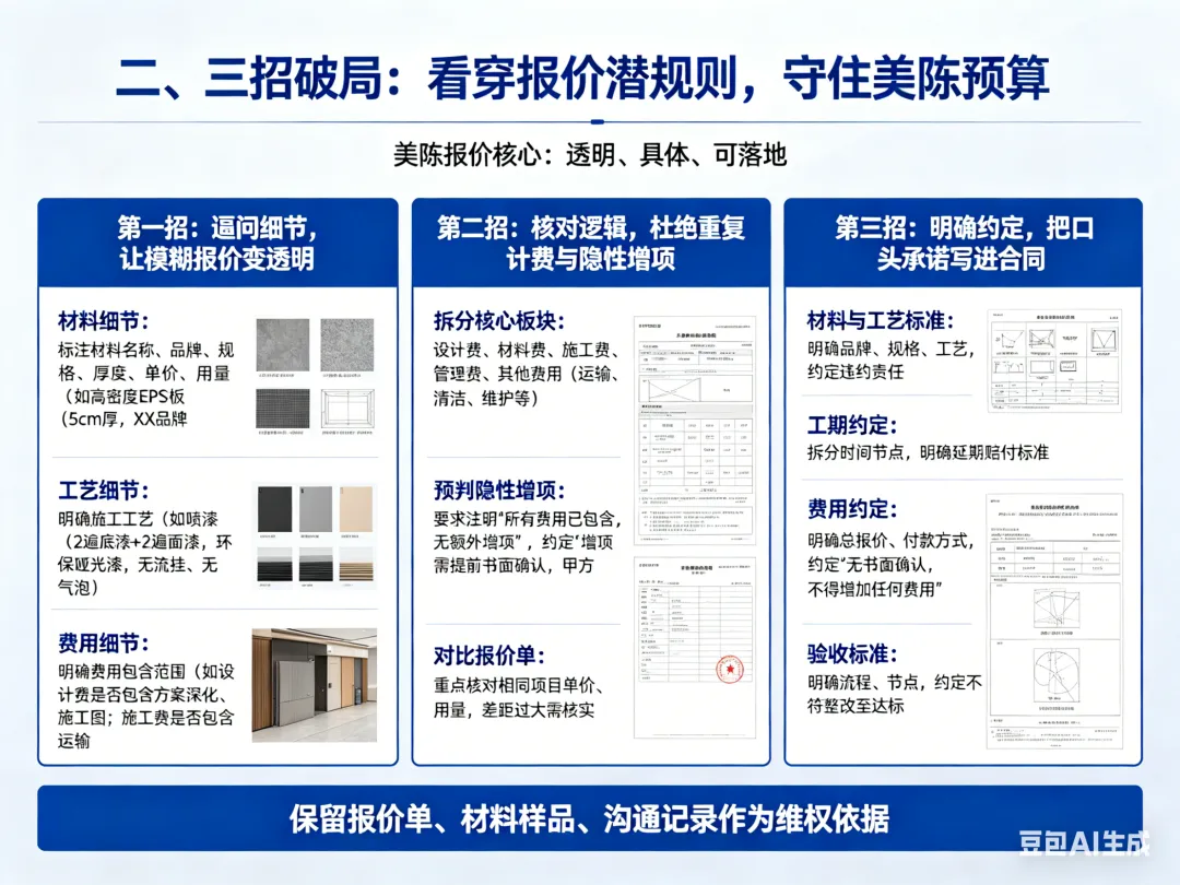 二、三招破局:看穿报价潜规则,守住美陈预算